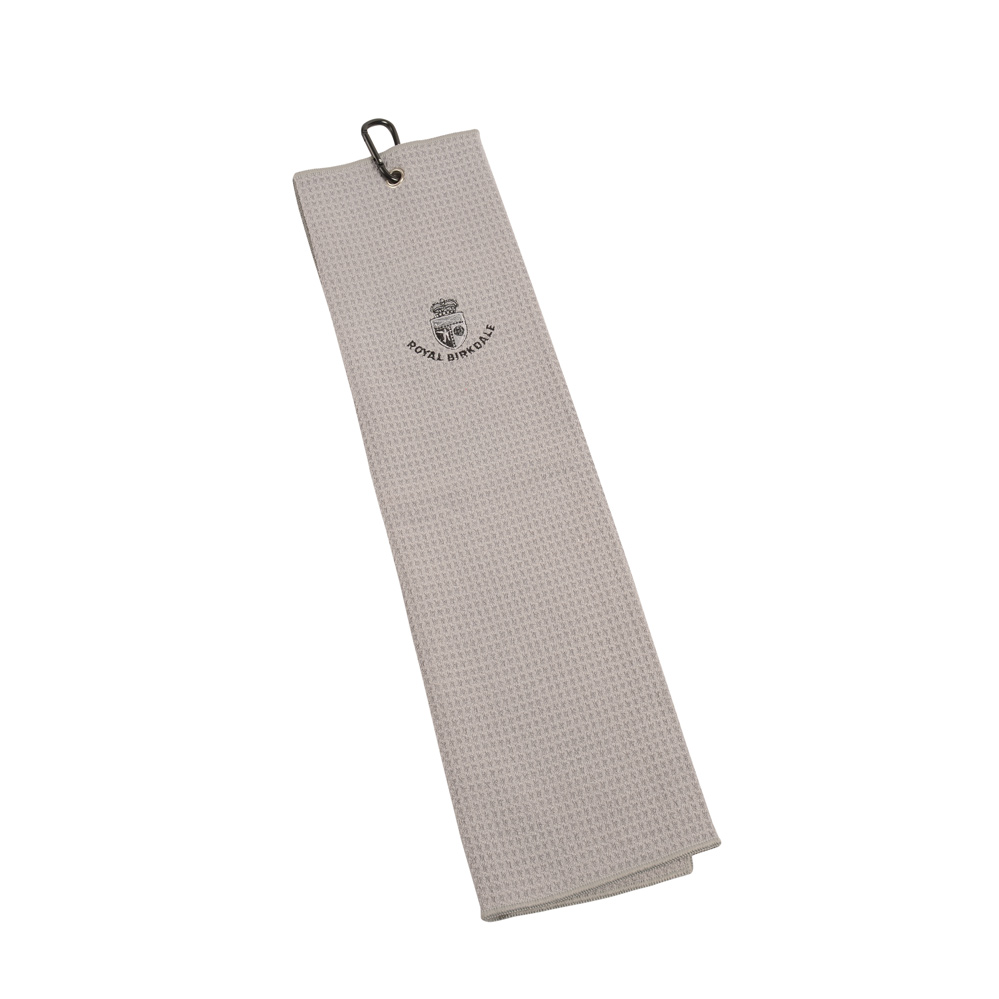 Tri-fold microfibre towel 40 x 57cm, carabiner hook.